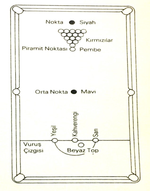 Her oyun başında beyaz top ‘D' harfi şeklindeki alan içerisinde herhangi bir noktaya konabilir. Ondan sonra nerede durursa oyun oradan sürdürülür. Masa dışına düştüğü takdirde yeniden ‘D' harfi içerisinden başlatılır.