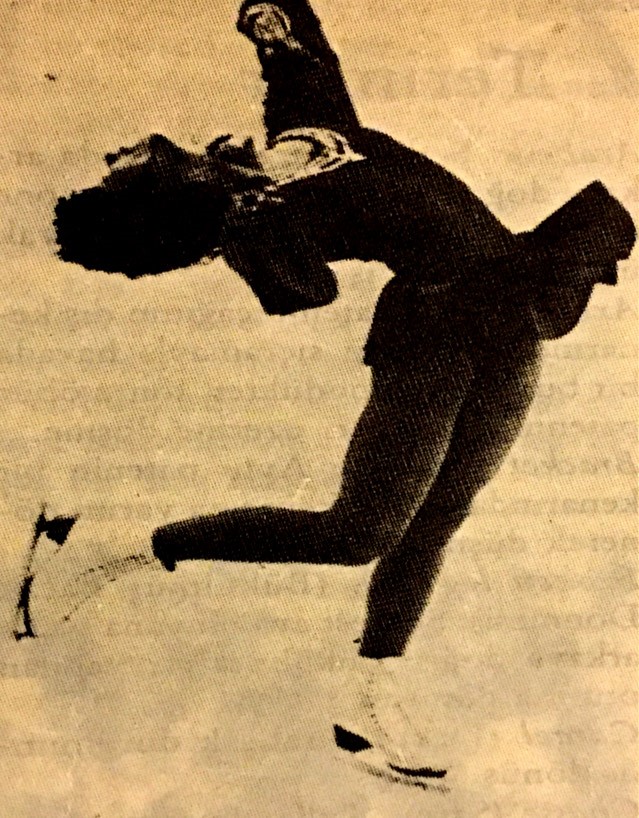 Resimdeki yatarak yapılan bir dönüşte yarışmacı başını, kollarını, ellerini, havaya kaldırdığı bacağını tam bir kontrol altında tutuyor.