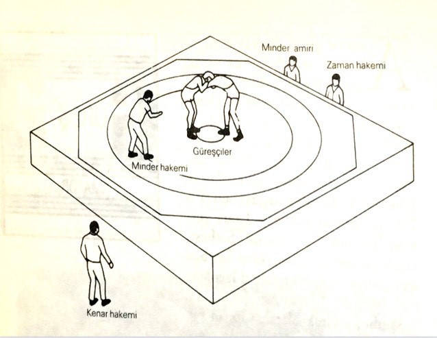 Uluslararası karşılaşmalar her iki stilde de yerden yüksek, kenarları eğimli minder üzerinde yapılır. Kenarlarda ip kullanılmaz. Minder 9 m çapında olup çevresi içerden sınırı belirtmek için 1 m genişliğinde kırmızıyla boyanmıştır. Bu halka pasif bölge olarak isimlendirilir. Karşılaşma 4 hakem tarafından yönetilir. Minder amiri (minder dışından maçı izler), minder hakemi, kenar hakemi (minder hakeminin kararlarını yorumlar) ve zaman hakemi.