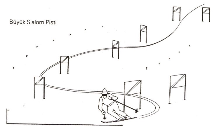 Büyük slalom ise slalom ve iniş yarışlarının ortak özelliklerini taşıyan bir yarış tarzıdır. Pist, slalom pistinden daha uzun olup daha geniş kapıların birbirinden daha uzağa yerleştirilmesiyle kurulmuştur. Pist koşulları yarışmalarda ilk kayanlar için genellikle daha elverişlidir. Yarışlar ilerledikçe karin sertleşmesine bağlı olarak kayma zorlaşmaya başlar. Bu gerçek göz önüne alınarak en iyi yarışçıların önce kaymaları kuralı benimsenmiştir ki, bu kural her yarışçıya eşit hak tanınmalıdır görüşünde olanlarca eleştirilmektedir.