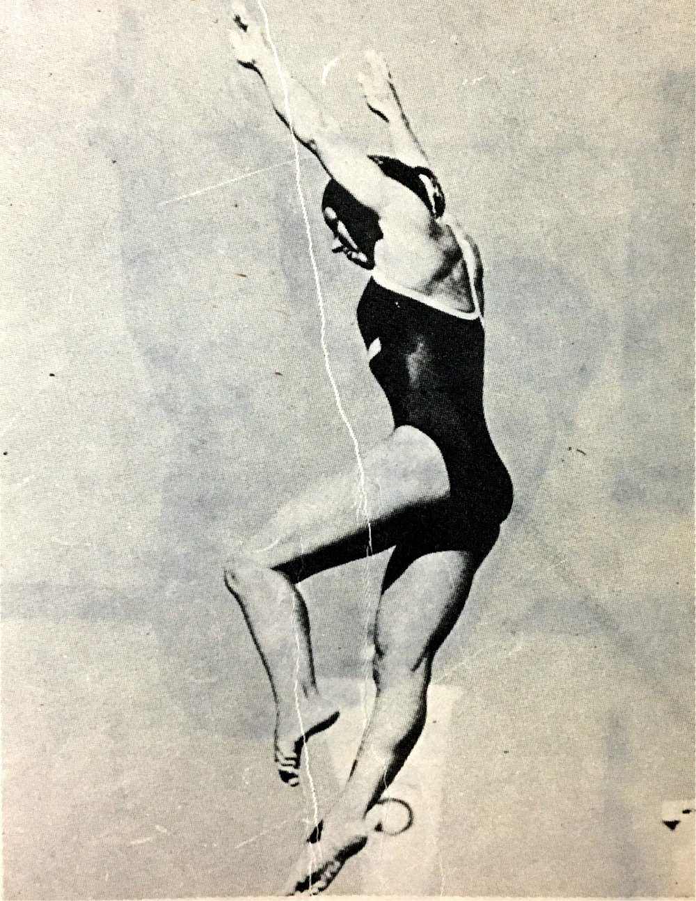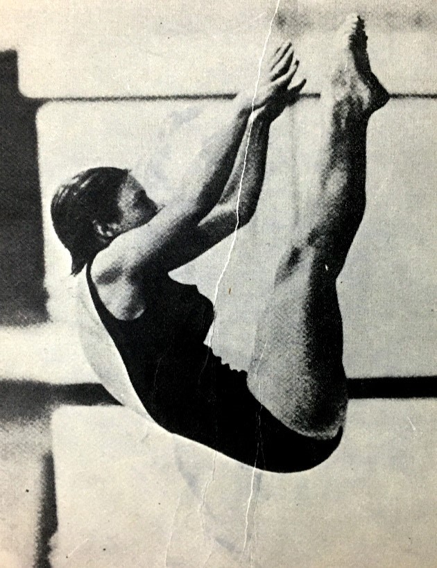 Bu test atlayışta sporcu tüm vücuduna hakim olarak havada adeta poz vermiş, bir ters takla atıp suya dümdüz girecek.